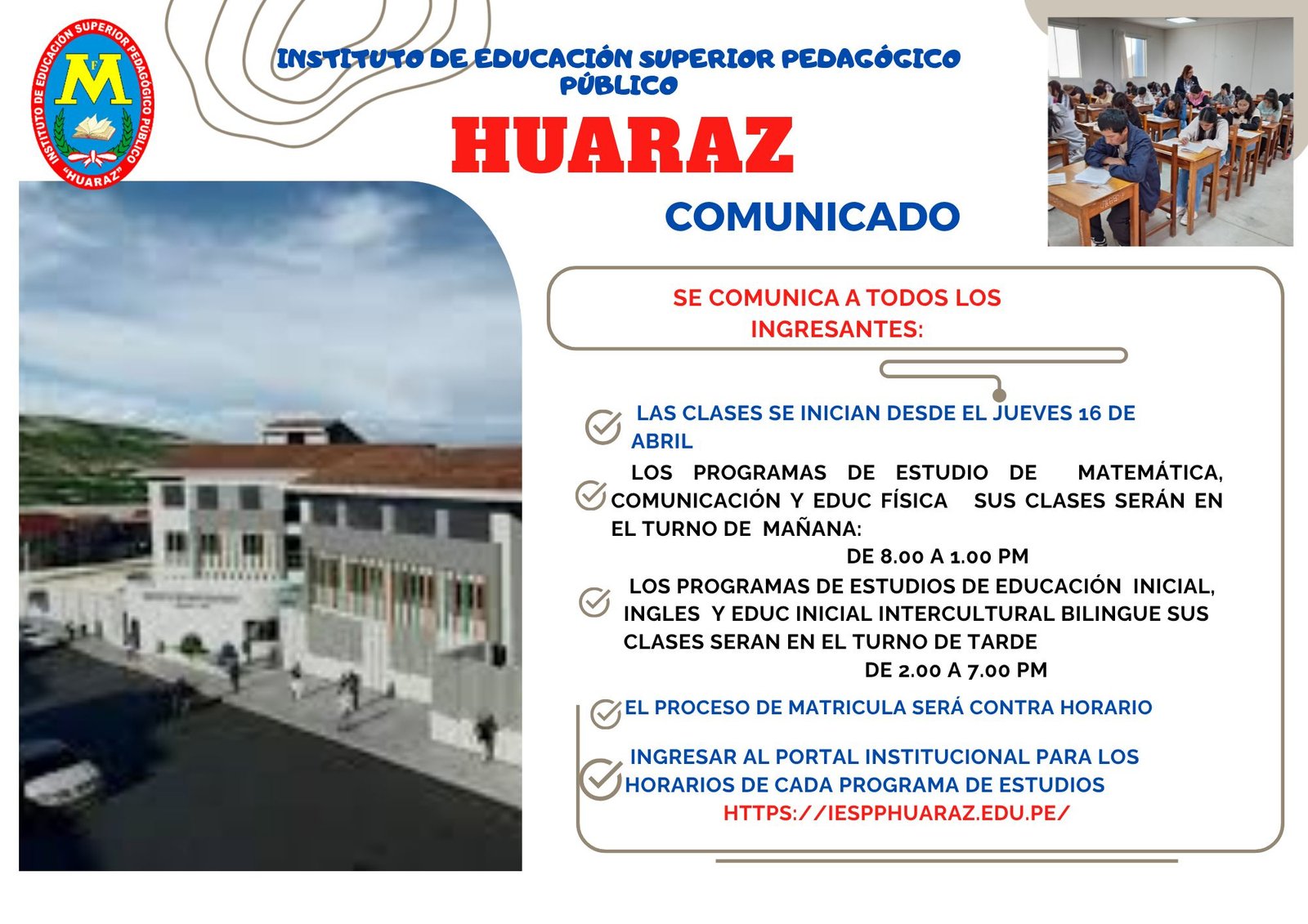 Bienvenidos a nuestro Instituto de Educación Superior Pedagógico Público "Huaraz".